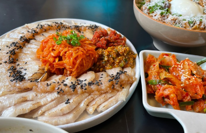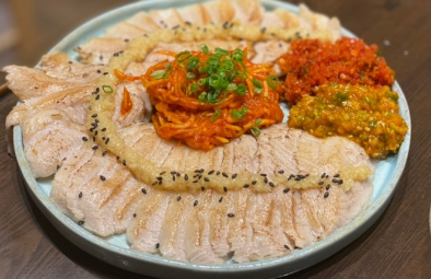 마늘 양념과 미나리 쌈장, 청어알, 특제 무생채와 곁들여 먹는 부드럽고 촉촉한 마늘 항청 수육도 인기가 많습니다.