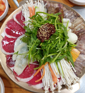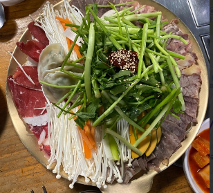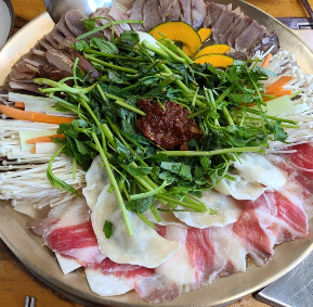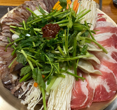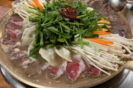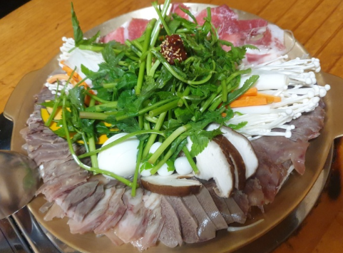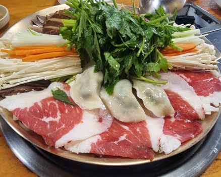 가까운 사람끼리 둥글게 모여앉아 육수를 부어가며 먹는 음식으로 추위를 이기게 하는 일종의 전골류 이기도 합니다.