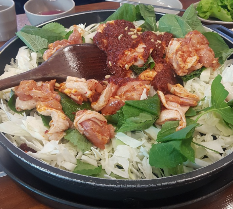 이 곳에서는 직접 기른 야채와 신선한 닭고기, 가평의 유명한 가평잣의 조화가 이루어진 닭갈비가 준비되어 있습니다.