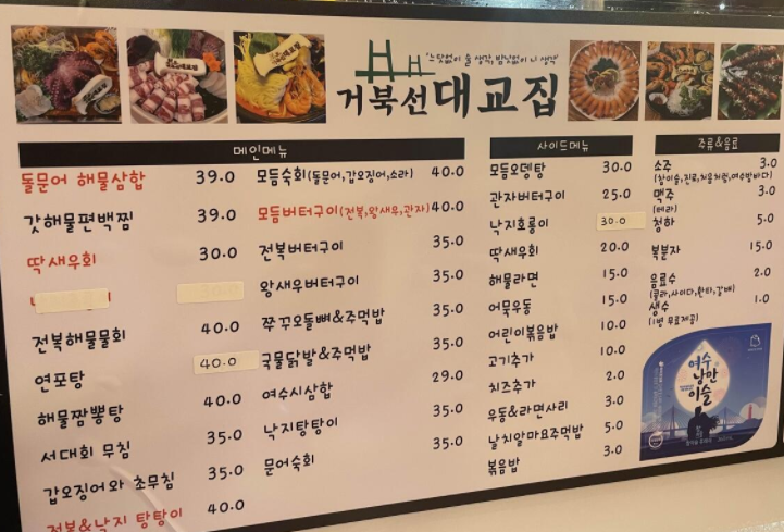 거북선 대교집에서는 돌문어해물삼합, 갓해물편백찜 뿐만 아니라 다양한 해산물 요리가 준비되어 있습니다.