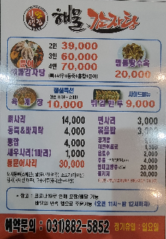 해물감자탕 메뉴 및 가격