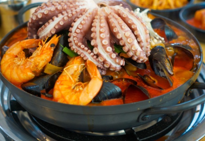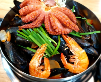 해물감자탕 집의 대표 메뉴는 문어해물 감자탕으로 감자탕과 해물을 동시에 즐길 수 있습니다.