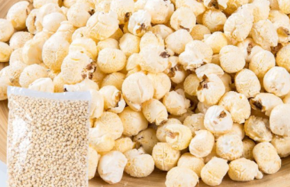 뻥 소리와 함께 연기가 피어오르고, 고소한 냄새가 진동합니다.