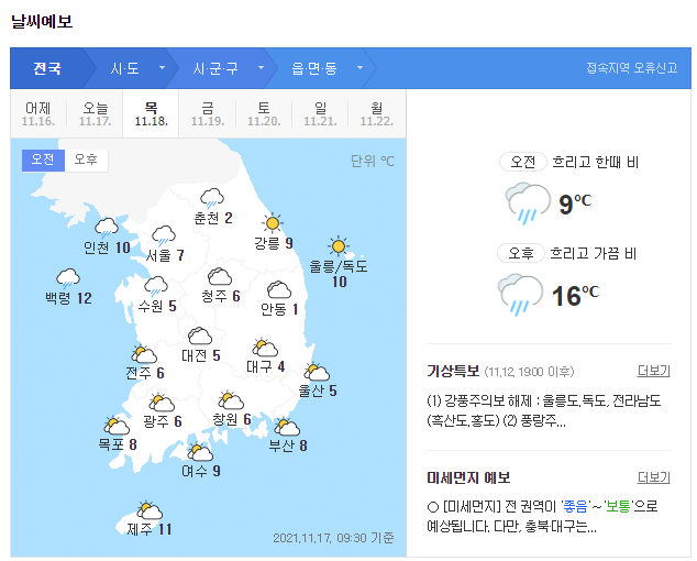중부지방의 경우 작은 우산 하나 챙기는 것이 좋겠습니다.