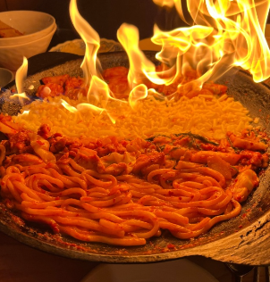 직화고스트 닭갈비는 매운 맛으로 세계에서 제일 매운 100만 스코빌 부트졸로키아(고스트페퍼)를 넣어 신라면보다 약간 매운맛을 살려낸 직화닭갈비 입니다.