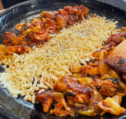국내산 100% 신선육 닭고기를 직화로 초벌하여 250도 이상 달궈진 무쇠철판에 볶아 드리는 류몽민의 대표메뉴인 직화 닭갈비 입니다.