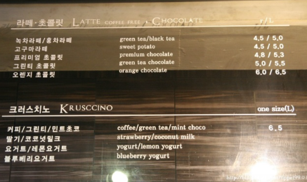 키크러스 카페 메뉴 및 가격