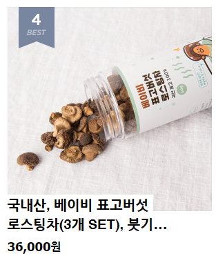 국내산, 베이비 표고버섯 로스팅차(3개 SET), 붓기차, 표고키드 : 36,000원