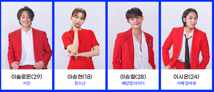 윤정훈(대학생), 이나빈(고등학생), 이병찬(대학생), 이소원(중학생)
