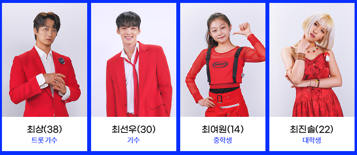 최상(트롯가수), 최선우(가수), 최여원(중학생), 최진솔(대학생)