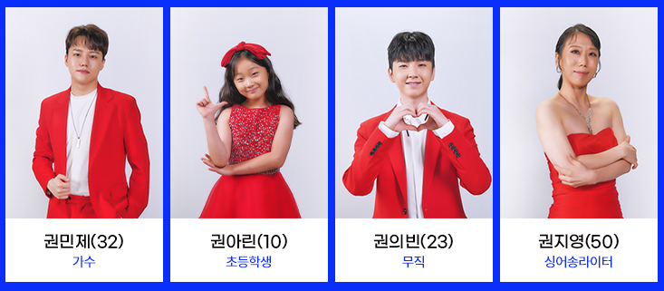 방세진(가수), 범승혁(대학생), 서라안(초등학생), 서지유(초등학생)