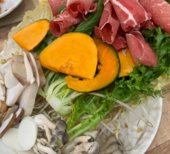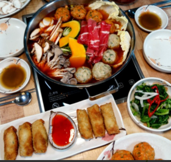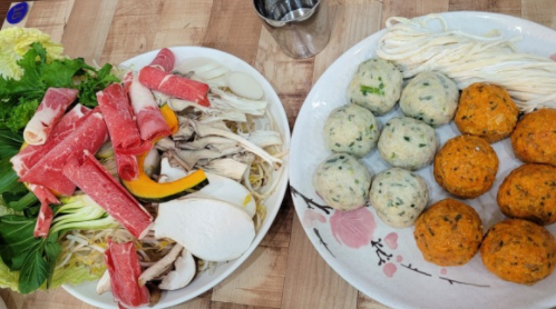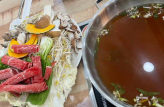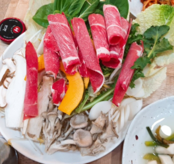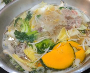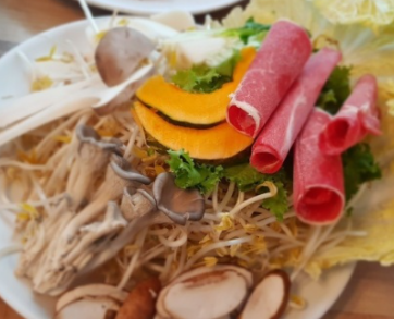 야채와 버섯등 만두전골 재료를 무한리필 할 수 있고 먹다 남을 경우 남은 음식 포장 용기도 구비되어 있습니다.
