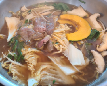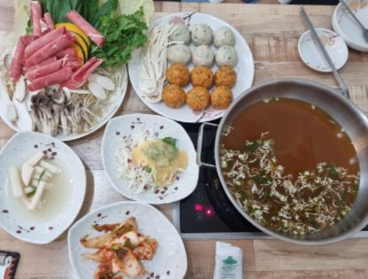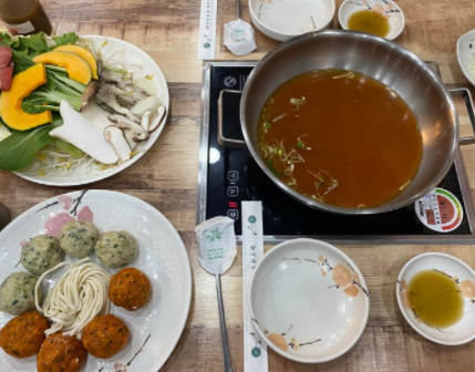 만두전골에 들어가는 만두가 당면을 넣지 않은 야채로 꽉 채운 만두로 식사 후에는 2층에 무료 디저트까지 즐길 수 있는 맛집 입니다.
