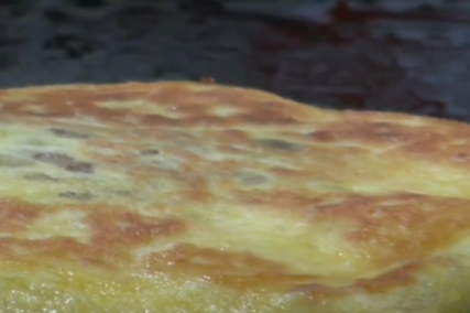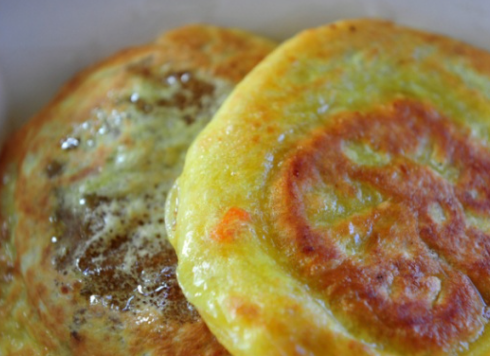 - 밑부분이 노릇노릇해지면 뒤집어서 누르개로 눌러 줍니다.