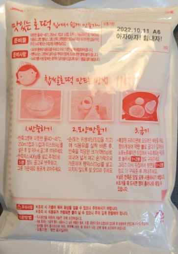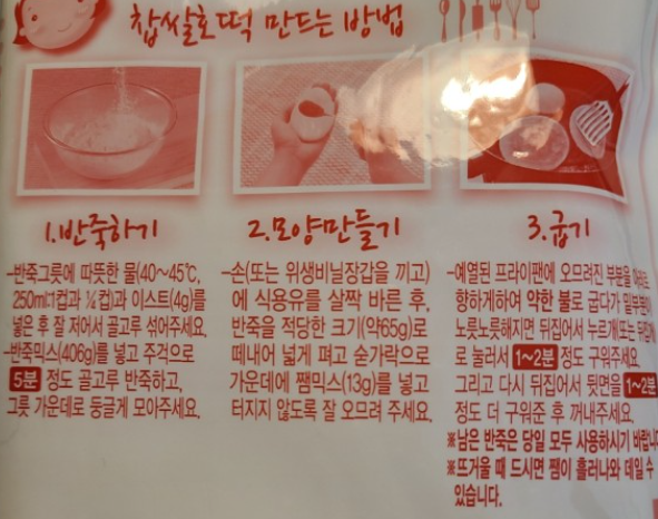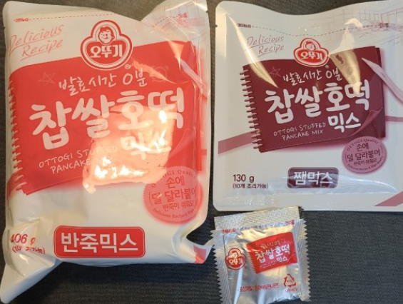 준비물 : 찹쌀호떡믹스 1(540g), 쨈믹스 1 (130g), 이스트 1, 식용유, 대접 1, 숟가락 (또는 누르개)