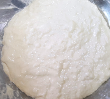 - 손에 비닐장갑을 끼고 식용유를 살짝 바른 후 반죽을 적당한 크기로 떼냅니다.
