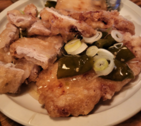 사천식 쿵파오 치킨매운맛1단계는 맵고 얼얼한 사천식 소스와 튀긴 후에 웍에 볶은 치킨입니다.