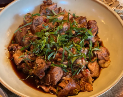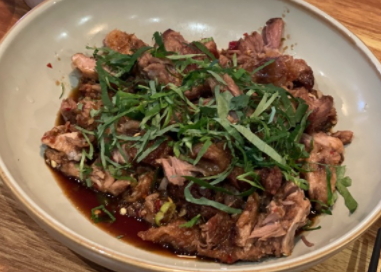 난징식 튀긴 족발은 숙성된 검은 식초와 부드러운 아롱사태 족발입니다.
