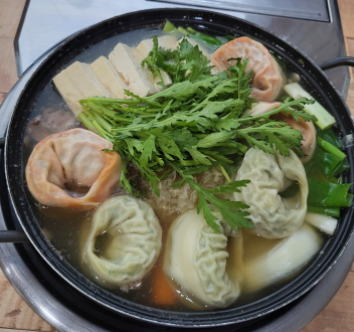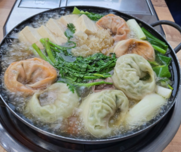여기에 속이 꽉 찬 만두와 100% 국내산 콩으로 직접 만든 두부를 넣은 두부만두전골도 인기가 있습니다.