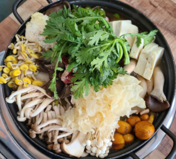 이곳의 추천 메뉴는 노루궁뎅이, 황금맛송이, 새송이, 느타리버섯, 팽이버섯 등 10가지로 육수를 낸 담백한 두부버섯전골입니다.