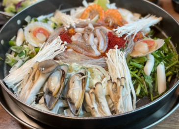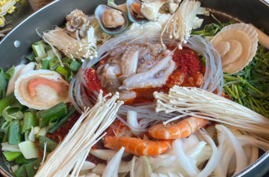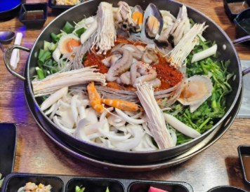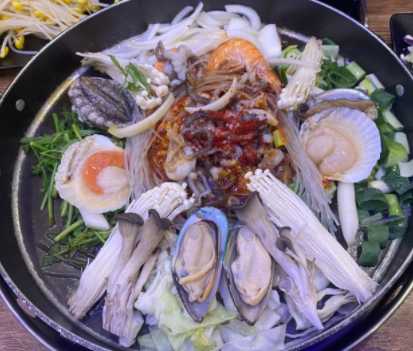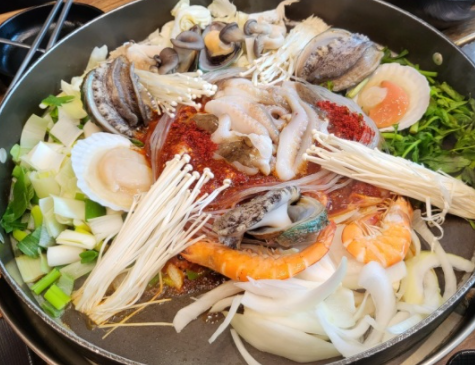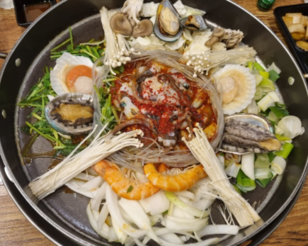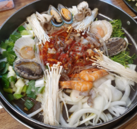 해낙전(철판)은 살아있는 전복과 낙지가 들어가있는 환상의 조합 입니다.