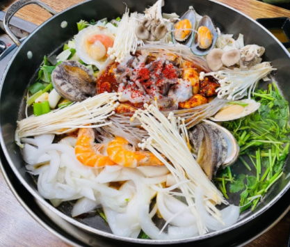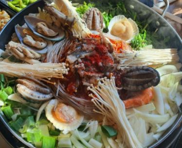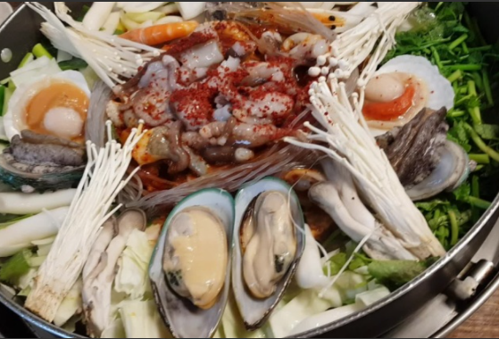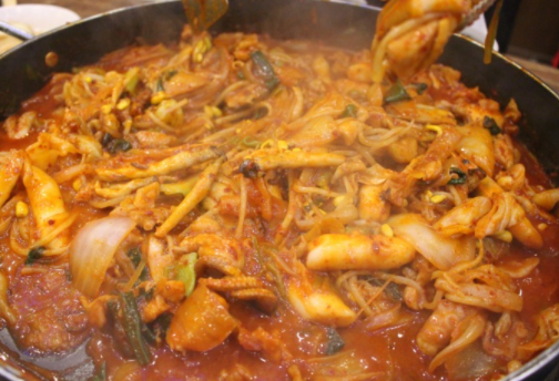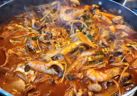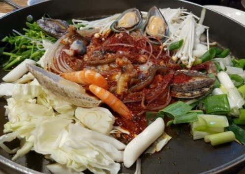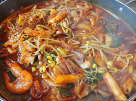 해물닭갈비는 해물과 닭갈비에 조합으로 만들어 졌습니다.
