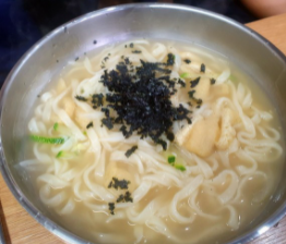 옛날칼국수는 멸치육수와 디포리 감자 등으로 끓여낸 육수에 김가루를 고명으로 올려 구수하면서도 시원한 맛이 특징입니다.