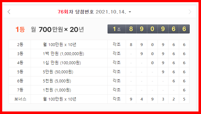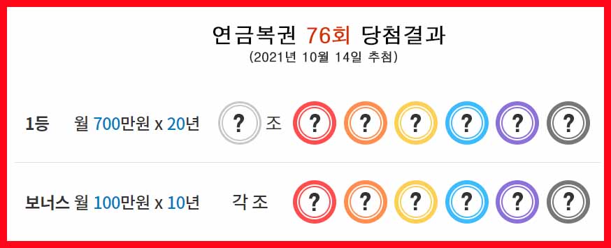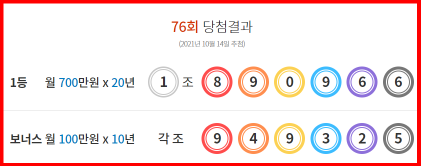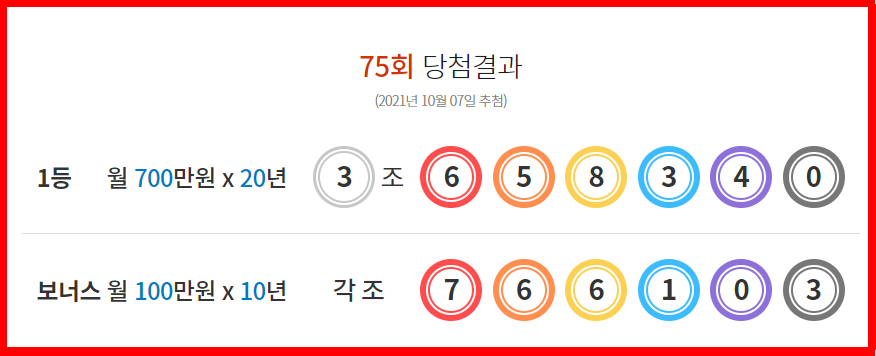 2021.10.07 - [분류 전체보기] - 연금복권 당첨 번호 - 75회 당첨결과