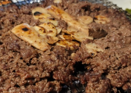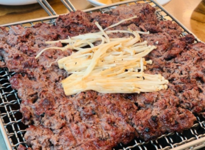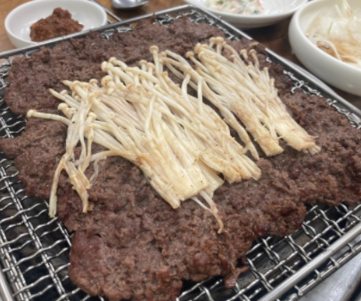 석쇠 한판에 가득 고기를 담으면 2명이 먹을 수 있는 분량이 됩니다.