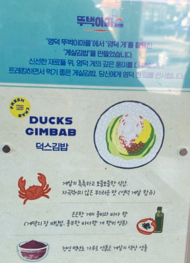강구에서 영덕 대게살을 떼온 뒤 게살 김밥을 만들게 되었다고 합니다.
