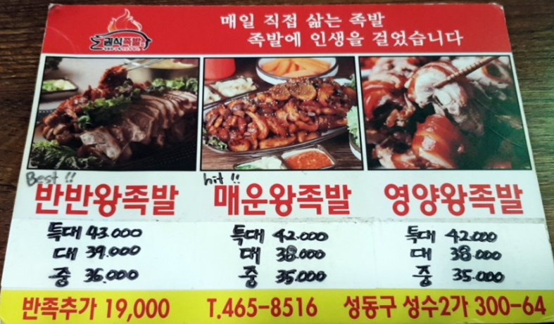 생방송 투데이 성수동 족발 빅데이터 랭킹 맛집은 어디인지 이곳의 정확한 상호명, 위치, 메뉴 및 가격 정보에 대해 자세히 알아보겠습니다.