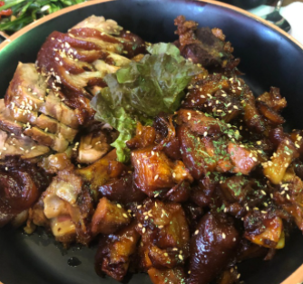 직접 만든 소스를 720시간 동안 숙성을 한 후에 부드럽게 잘 삶긴 족발과 함께 직화구이를 해서 불 향을 입혀 맛을 내고 있습니다.
