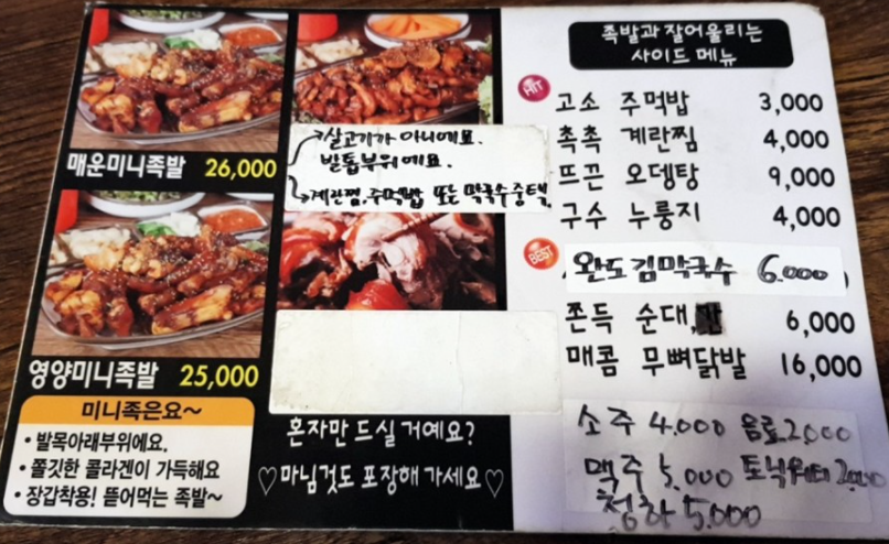 권식족발의 메뉴판을 통해 다양한 메뉴와 가격 정보를 확인하세요.