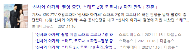 신사와 아가씨는 지난 11월 16일에도 확진자가 나와서 촬영이 중단되기도 했습니다.