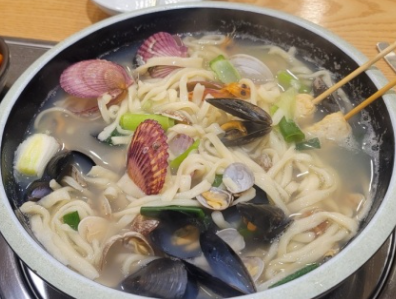 신선한 해물과 좋은 면, 여러가지 재료를 넣어 끓인 육수로 만들어지는 칼국수 입니다.