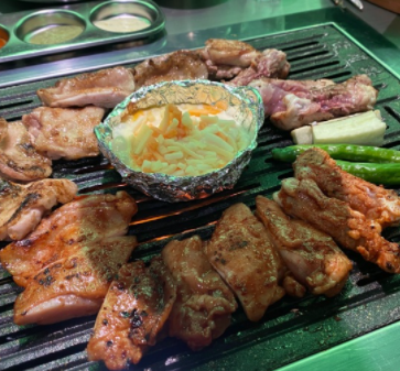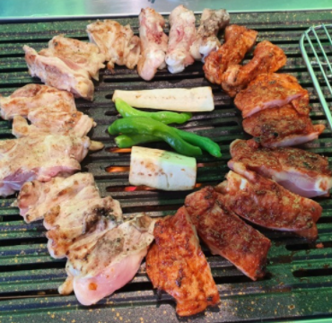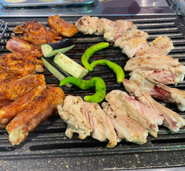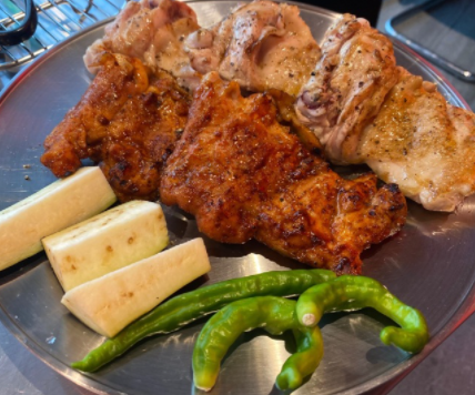금계 숯불 닭구이는 닭허벅지 부위 380g 소금구이로 미리 초벌해서 제공합니다.
