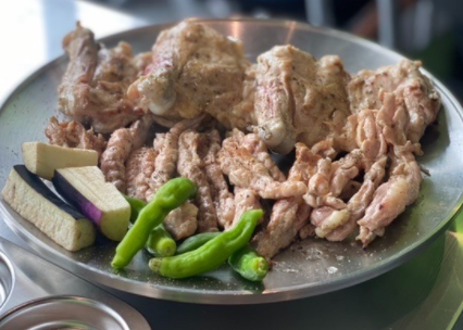 금계화(金鷄火)란 숯불 직화로 구운 금빛 찬란한 닭구이를 말합니다.