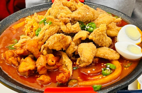 시그니쳐 메뉴인 꼬꼬닭 떡볶이는 매콤한 떡볶이 소스와 찐한 닭육수가 어우러진 깊은 찐 맛을 느낄 수 있습니다.