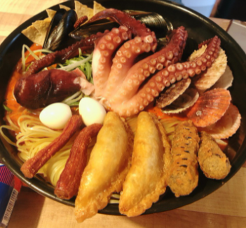씨볶이는 문어 가리비 홍합 그리고 해물육수로 즉석 떡볶이를 조리합니다. 매운맛은 순한맛부터 아주매운맛까지 조절이 가능합니다.