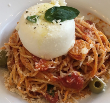 부라타뽀모도로는 뽀모도로 파스타 위에 부라타치즈를 얹어 치즈와 토마토 파스타를 같이 먹는 환상의 맛입니다.