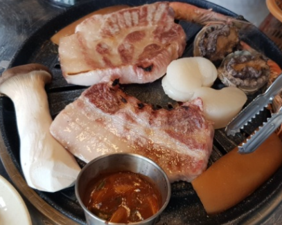 돈대표 셋트 A (흑돼지+해산물) : 58,000원 흑돼지오겹살+흑돼지목살+전복+키조개관자+타이거새우+순두부찌개+치즈계란크러스트 돈대표 셋트 B (한라산샤브) : 40,000원 오겹살+숙주+양배추+팽이,느타리버섯+면사리 (2인기준) 흑돼지 근고기 : 58,000원 오겹살+가브리살 가브리살 : 56,000원 600g / 2인기준 전복,새우,관자(추가시) : 15,000원 순두부찌개(추가시) : 3,000원 공기밥 : 1,000원 소주,맥주 : 4,000원 제주막걸리 : 3,000원 우도땅콩막걸리 : 6,000원 음료수 (캔) : 2,000원 |