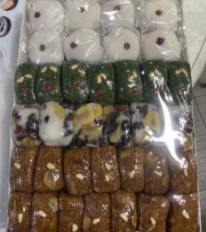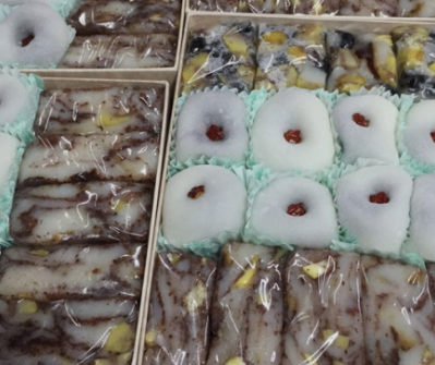 찹쌀떡 선물세트 (10개) : 16,000원 찹쌀떡 (10개) : 15,000원 찹쌀떡 선물세트(20개) : 32,000원 답례떡 (소) : 4,500원 답례떡 (중) : 6,500원 찹쌀떡 선물세트(12개) : 20,000원 떡케잌(돌/환갑/생일외) : 80,000원 |