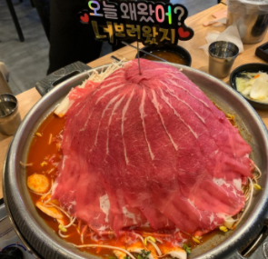 빨랫줄 샤브샤브를 주문하면 통갈비가 서비스로 나오고 백탕과 홍탕으로 즐길수가 있습니다. 고기 케이크를 보는듯한 남다른 비주얼로 손님들의 시선을 사로잡고 있는 이곳은 어디인지 이 곳의 정확한 상호명, 위치, 메뉴 및 가격 정보에 대해 자세히 알아보겠습니다.