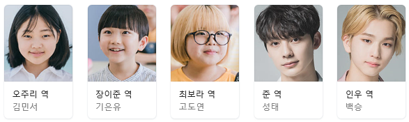 오주리 역(김민서), 장이준 역(기은유), 최보라 역(고도연), 준 역(성태), 인우 역(백승)