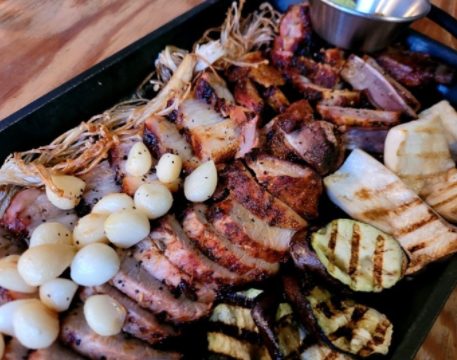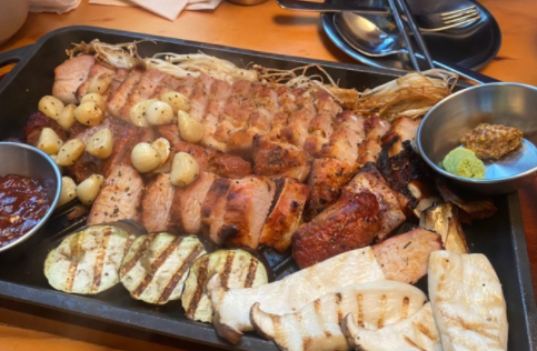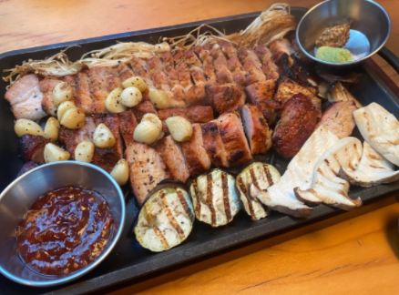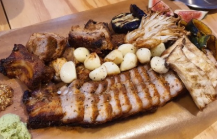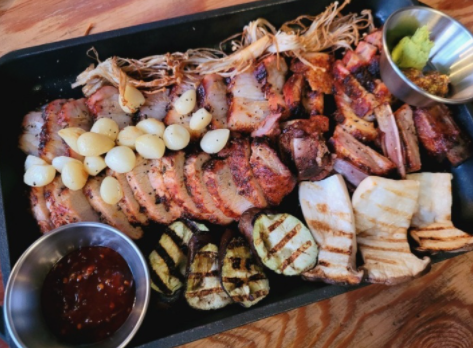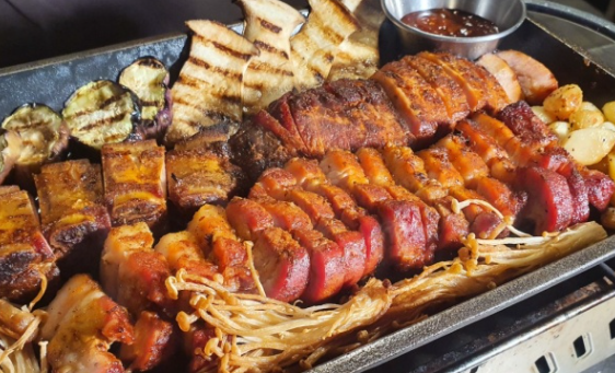 군통바베큐플레터(2-3인) : 33,000원 창주랜드만의 돼기고기시즈닝으로 12시간 숙성시킨 삼겹살과 돼지갈비를 최초의 한국식 오븐이라 할수 있는 군고구마통에 참나무향을 입혀 바베큐한 메뉴 고기 추가(300g) : 17,000원 기본 군통바베큐플레이트 주문후 추가가능한 메뉴입니다 골뱅이파스타 : 15,000원 로제파스타 : 18,000원 짬뽕파스타 : 25,000원 콘치즈 : 8,000원 설탕토마토 : 5,000원 노가리 : 9,000원 치즈플래터 : 25,000원 메론프로슈터 : 25,000원 |