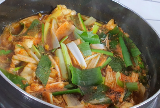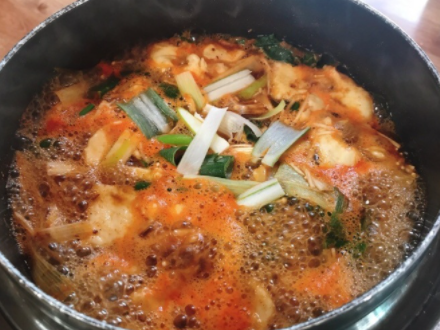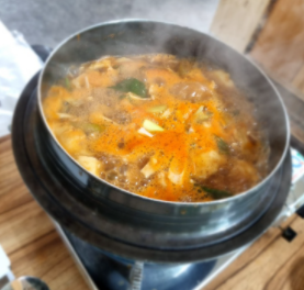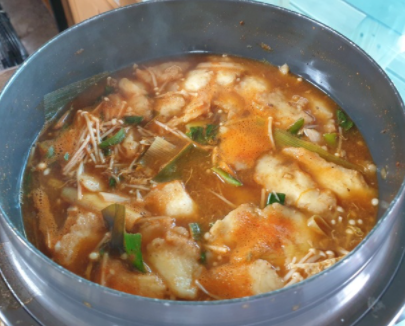 꾹저구탕 맛의 가장 큰 특징은 뚝배기 속에 꾹저구와 함께 시골에서 농사 지은 고추 콩으로 직접 장을 만듭니다. 여기에 대파, 버섯, 깻잎 등 야채를 듬뿍 넣어 뒷맛이 깨끗합니다.