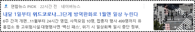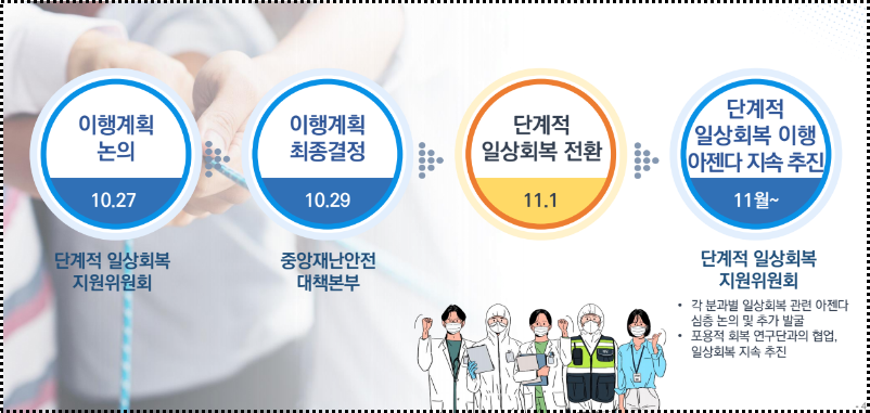 오는 11월 1일부터 단계적 위드코로나(일상회복)가 시작된다는 보도가 나왔습니다.