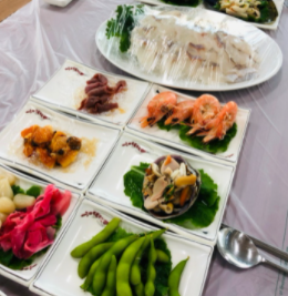 전복파장어(전파장) : 60,000원 파김치와 아나고,전복의 미친콜라보. 아나고(붕장어)+활전복+묵은파김치=전복파장어 통우럭매운탕&지리 : 40,000원 뜨거운 국물인데 시원해요. 우럭을 통째로 넣어서 미역과 함께 끓여서 제공됩니다. 우럭(스끼10가지이상) : 변동 국민 활어 우럭회와 해산물 스끼 마지막은 매운탕&지리가 제공됩니다. 광어(스끼10가지이상) : 변동 활어 광어회와 해산물 스끼 마지막은 매운탕&지리가 제공됩니다. 도다리(스끼10가지이상) : 변동 도다리는 봄에만 먹을 수 있어요. 회덮밥 : 15,000원 우럭회를 기본으로 갖은 야채와 함께 직접 만든 비법 초장에 비벼 드시면 좋습니다. 바지락칼국수 : 7,000원 가게 옆이 바지락 공장이에서 가져다 쓰고 있습니다. 꽃게탕,찜(봄,가을) : 변동 단호박이 들어간 꽃게탕입니다. 전어,대하(가을) : 변동 쭈꾸미샤브(봄) : 변동 |