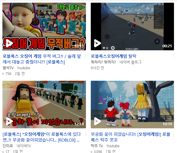 오징어 게임은 청소년 관람 불가임에도 불구하고 그 인기에 힘입어 로블록스 게임에도 등장 했습니다.