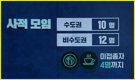 사적모임 인원의 경우 수도권은 10명, 비수도권은 12명까지 허용되었습니다.